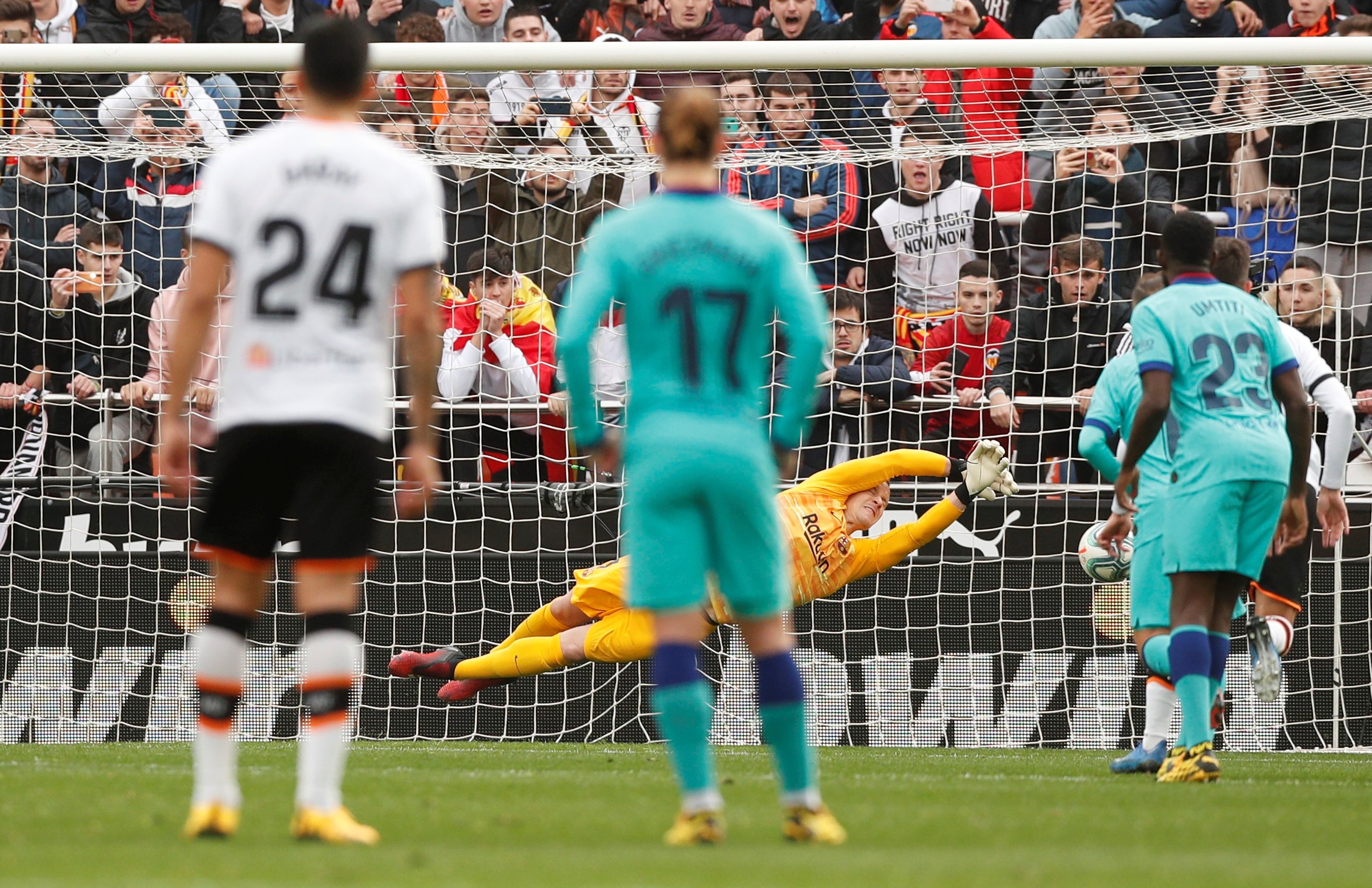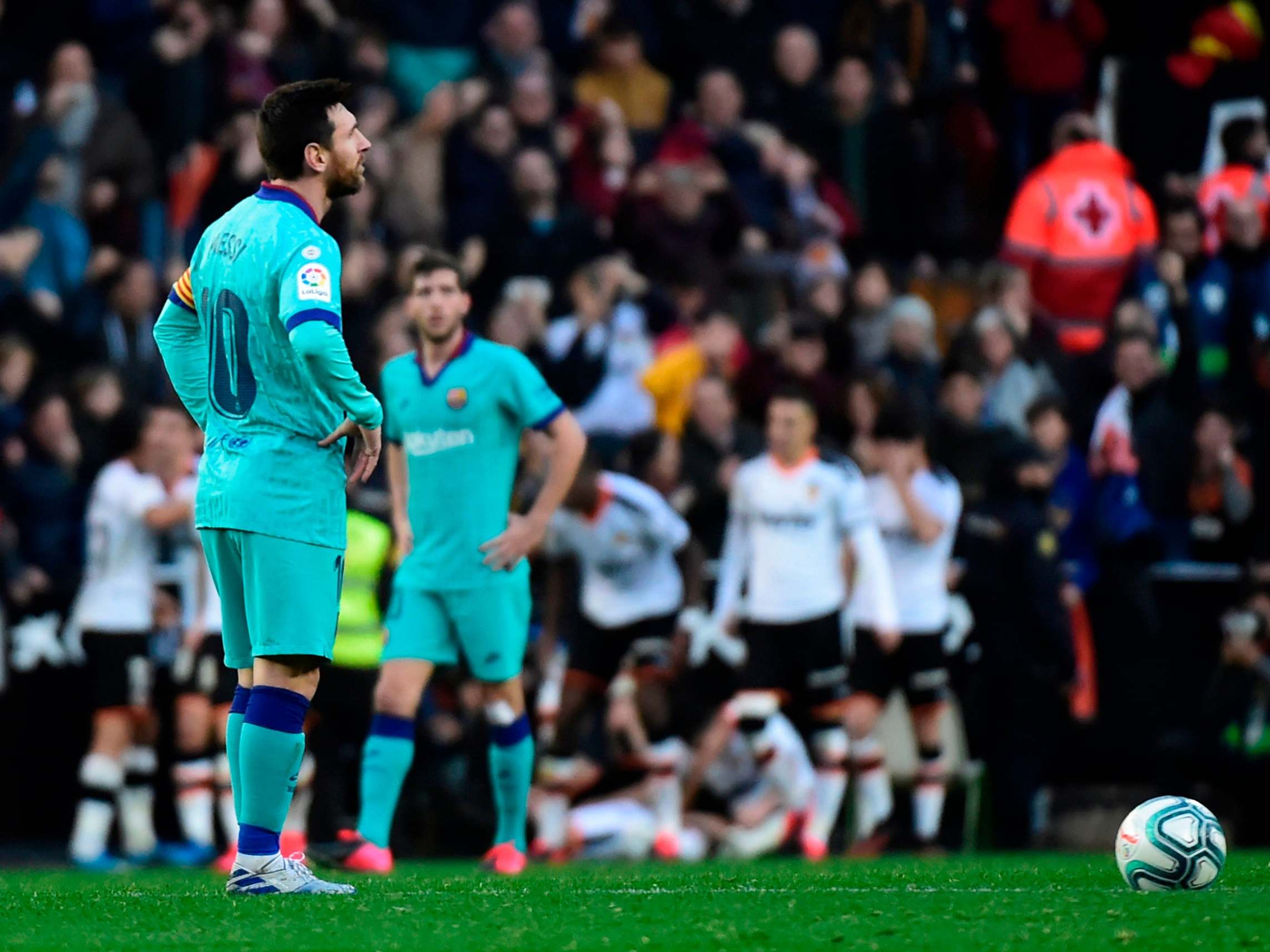 El equipo Catalán cayó sorpresivamente frente al Valencia 2 a o por la vigésima primera fecha, dando a la chance al Real Madrid de cortarse en la punta.