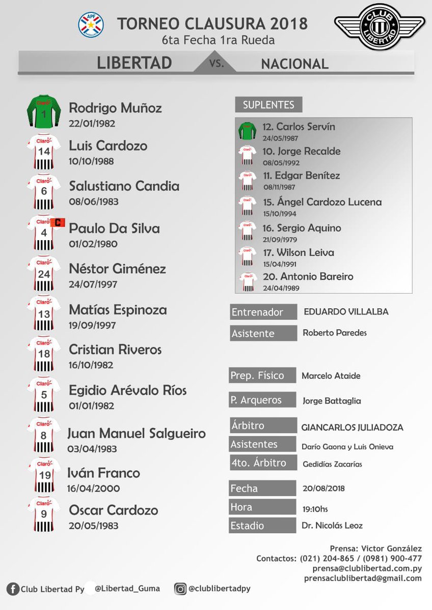El encuentro se jugó en el estadio Nicolás Leoz de Libertad. Ante Boca (30/8) el elenco guaraní hará las veces de local en el Defensores del Chaco con capacidad para 44.000 espectadores.