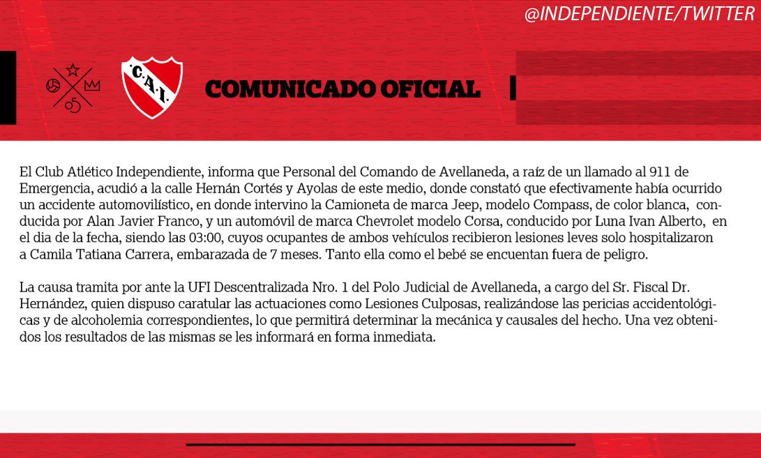 El Club se puso a disposición de la familia chocada y se aguardan los resultados de la muestra de sangre para que actúe la justicia.