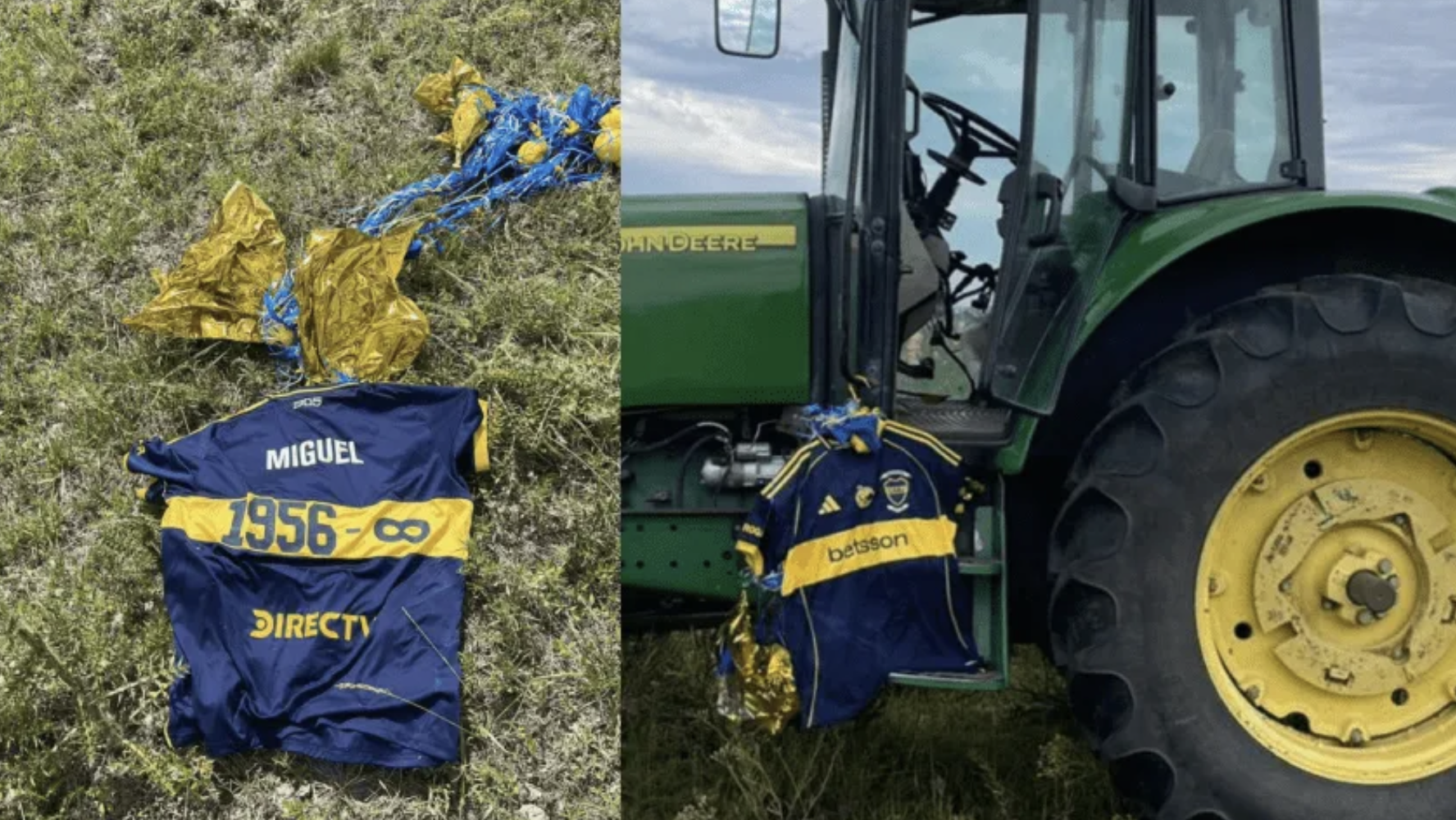 El periodista uruguayo Pepe Temperan, en su cuenta de X, dio cuenta de la historia. Al parecer, un trabajador rural de Cañada Nieto, en el departamento de Soriano, notó que algo brillaba en la tierra y cuando se acercó se encontró con la camiseta, todavía atada a los globos desinflados.