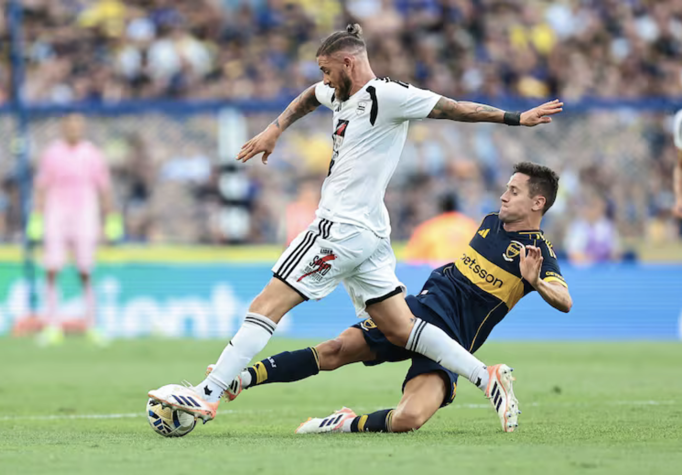 Boca, mientras tanto, buscaba por todos los caminos, pero recién encontraba claridad en las pelotas paradas. Hasta que a los 32 minutos llegó el grito del desahogo. Paredes ejecutó un tiro libre perfecto al corazón del área y allí apareció otra vez Di Lollo, que esta vez no perdonó: cabezazo potente, al medio del arco, imposible para Arce. El defensor coronó así una actuación sobresaliente y le dio al Xeneize la ventaja que merecía por insistencia y volumen de juego.