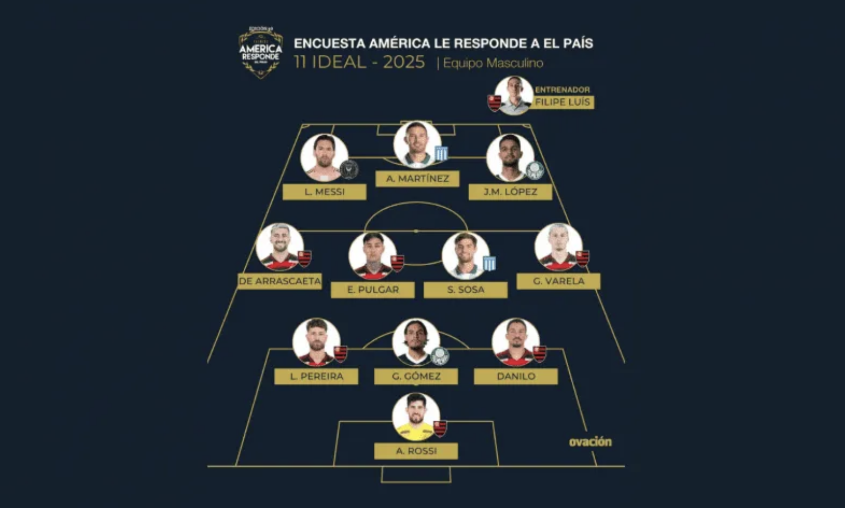 Luego de premiar al mediocampista uruguayo Giorgian de Arrascaeta como Rey de América (por encima de Lionel Messi), el diario uruguayo El País, organizador de los galardones, reveló el XI ideal de América de 2025, en el que hay cinco argentinos, dos brasileños, dos uruguayos, un chileno y un paraguayo.