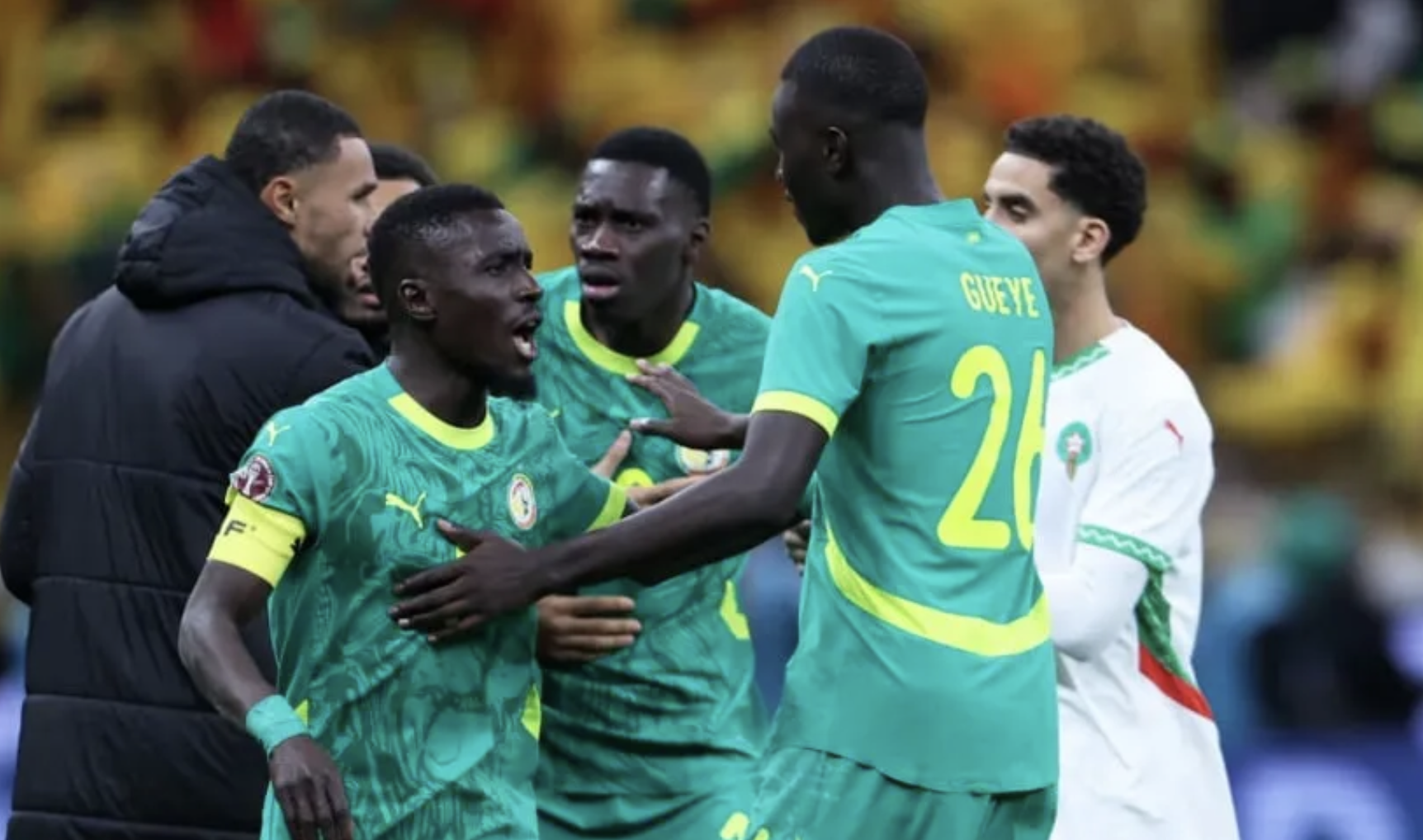 La jugada que encendió el escándalo se produjo sobre el cierre del tiempo reglamentario, en Rabat y ante 69.500 hinchas. Un penal cobrado para Marruecos en el minuto 100 provocó la reacción del plantel senegalés: todos sus futbolistas, salvo Sadio Mané, se fueron al vestuario como señal de protesta.