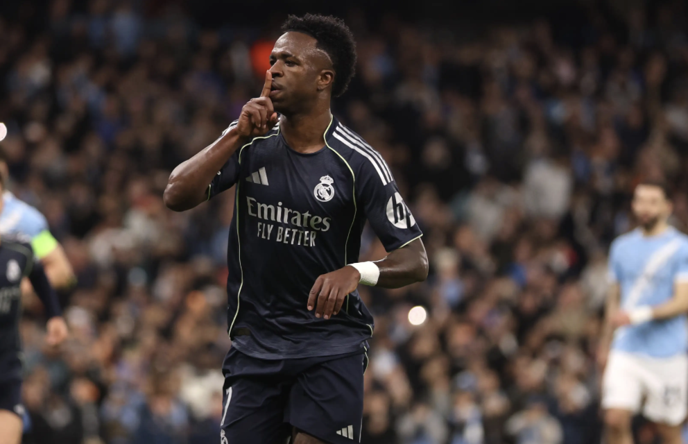 Vinicius Jr. se encargó de aumentar la diferencia en favor de Real Madrid ante Manchester City por Champions League y celebró su gol de penal con un picante festejo, una revancha personal ante los mismos hinchas que le acusaron de “llorón” al perder el Balón de Oro a manos de Rodri en 2024.