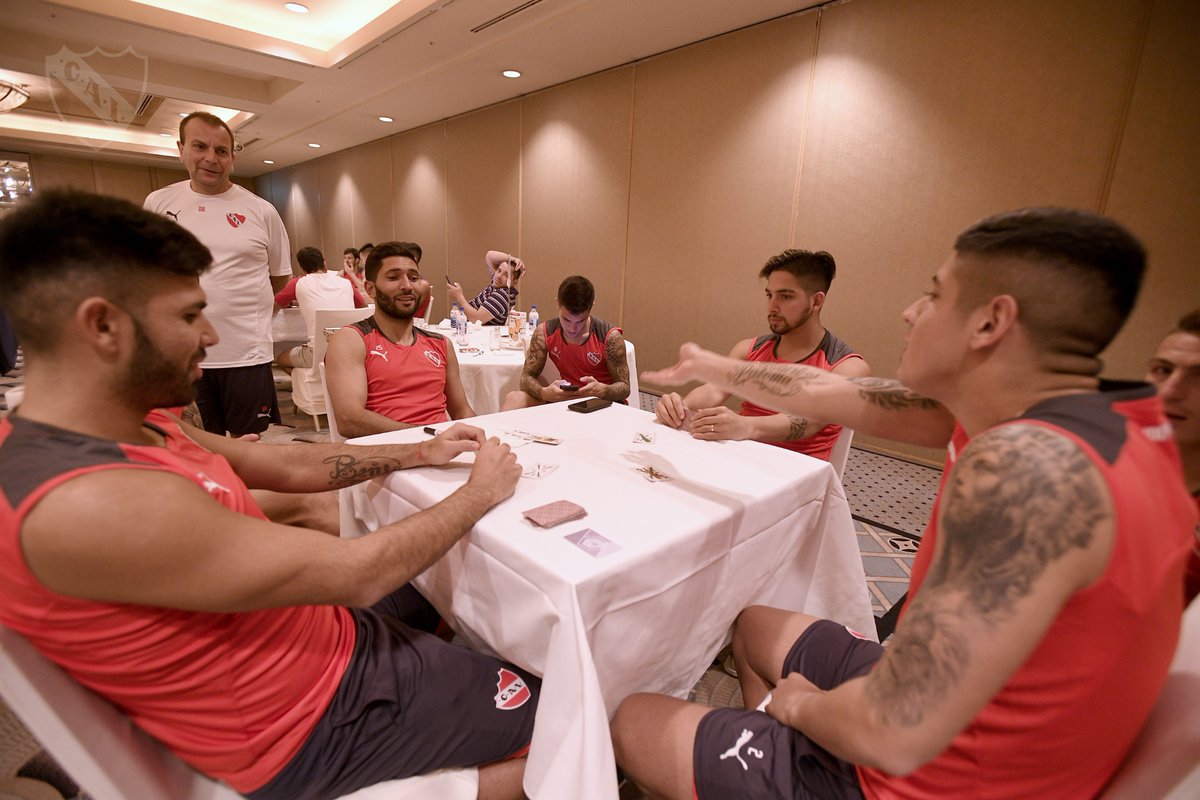 Ayer por la noche (hora argentina) el plantel de Independiente se hospedó en el hotel Hyatt y ya tuvo su primer entrenamiento. Leandro Fernández dejó una joyita, y los jugadores se jugaron un truco. Completito el día rojo.