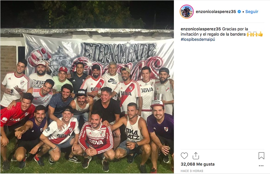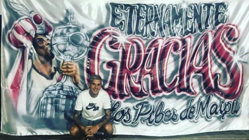 El campeón de América estuvo con sus amigos en su Maipú natal y estos lo homenajearon con un trapo inmenso y la insignia de “Eternamente gracias”, mientras él besa el trofeo. Mirá la foto que subió el propio jugador a Instagram.