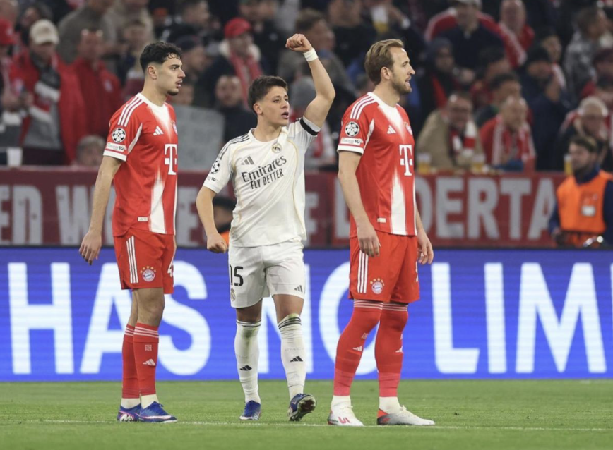 Lejos de bajar la intensidad, el partido siguió con golpes de un lado y del otro. Güler volvió a aparecer a los 29 con un gol de gran factura para el 2-1 del Madrid, pero la jerarquía de Harry Kane se hizo presente a los 38 para establecer el 2-2 en un trámite electrizante.