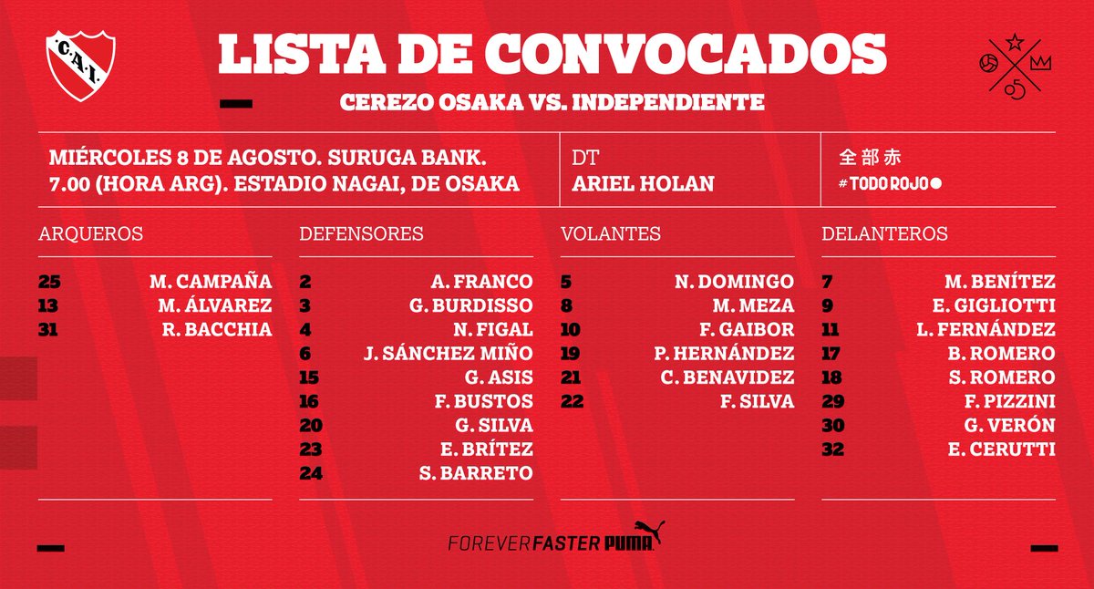 Los 26 jugadores que viajaron a Japón a las órdenes de Holan, con la excepción de Leandro Fernández que se recupera de la lesión de ligamentos, y le pidió al DT acompañar a sus compañeros.