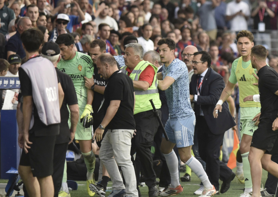 Unos segundos de furia podrían arruinar por completo el presente y el futuro de Esteban Andrada en el fútbol español. Sobre el cierre del clásico ante Huesca, el arquero argentino de Zaragoza fue expulsado por empujar a un rival y, tras desatarse una batahola, golpeó brutalmente en el rostro al capitán Jorge Pulido. Una agresión que podría costarle muy caro.