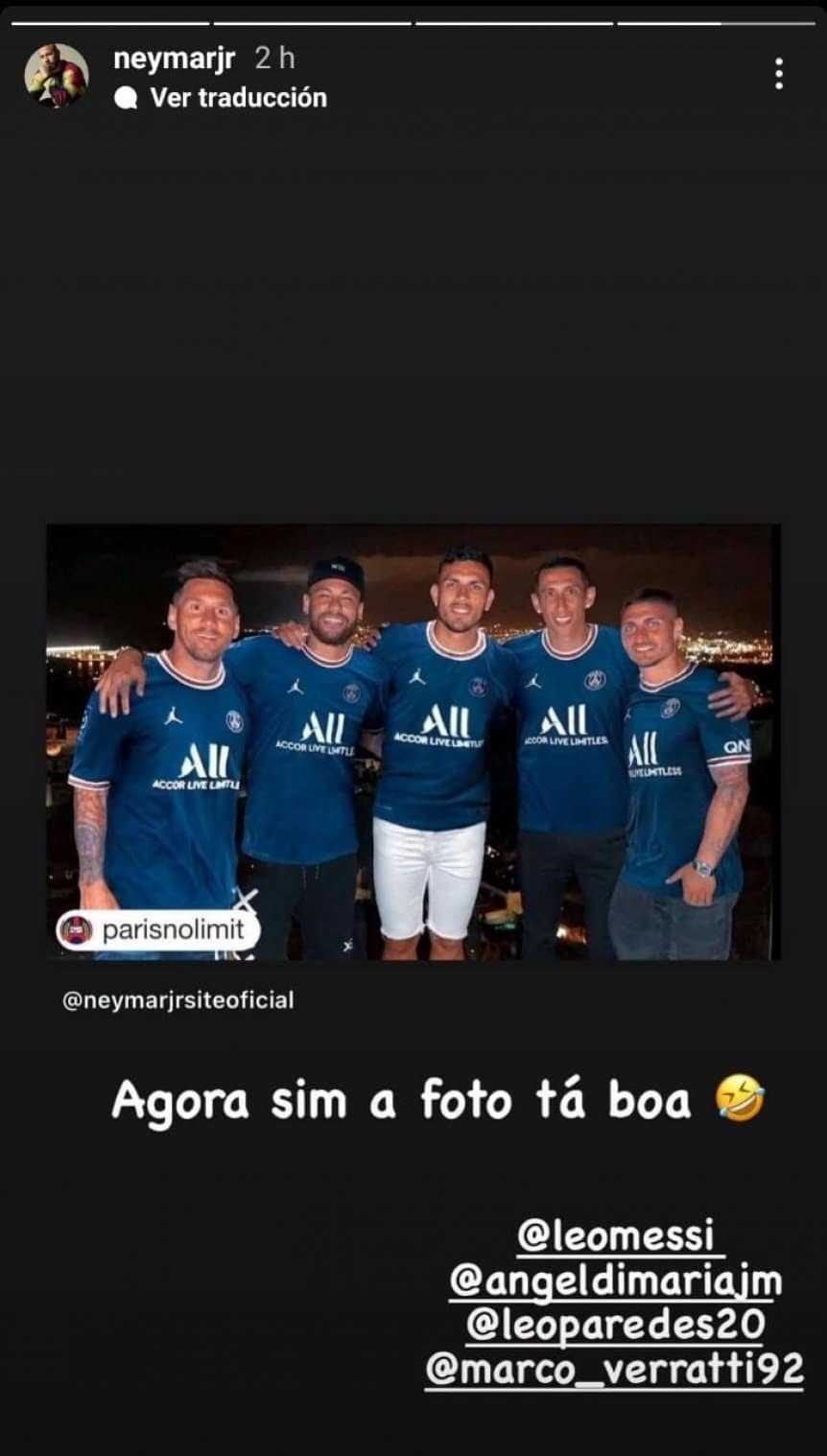 Pero en las últimas horas Neymar volvió a publicar la foto con Messi que había generado polémica, pero en esta oportunidad con un pequeño detalle de edición. En esta oportunidad los cinco integrantes de la foto están con la remera del PSG.