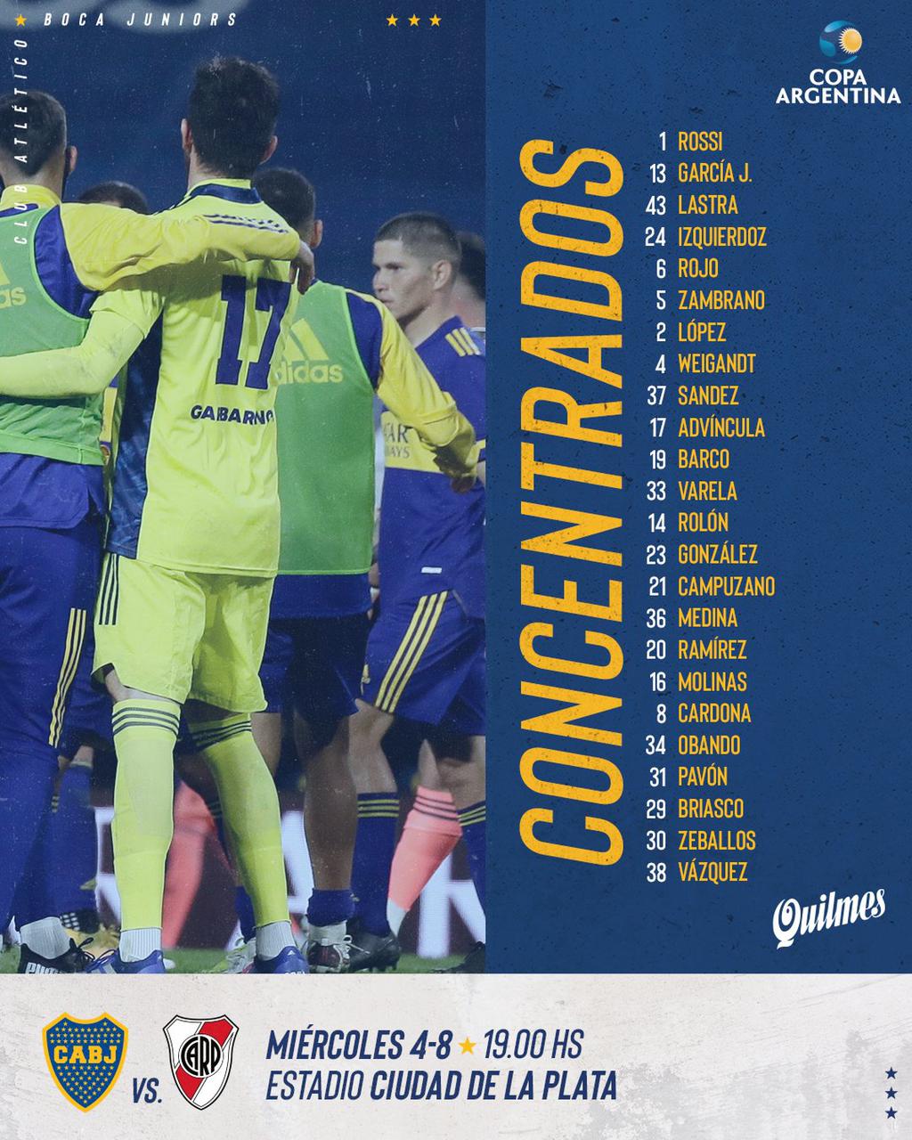 Pero hace instantes el club dio a conocer la lista de jugadores que se concentrarán para el encuentro. Dentro de la misma no figuran sorpresas y dentro de las posibilidades está repetir los once titulares del último encuentro.