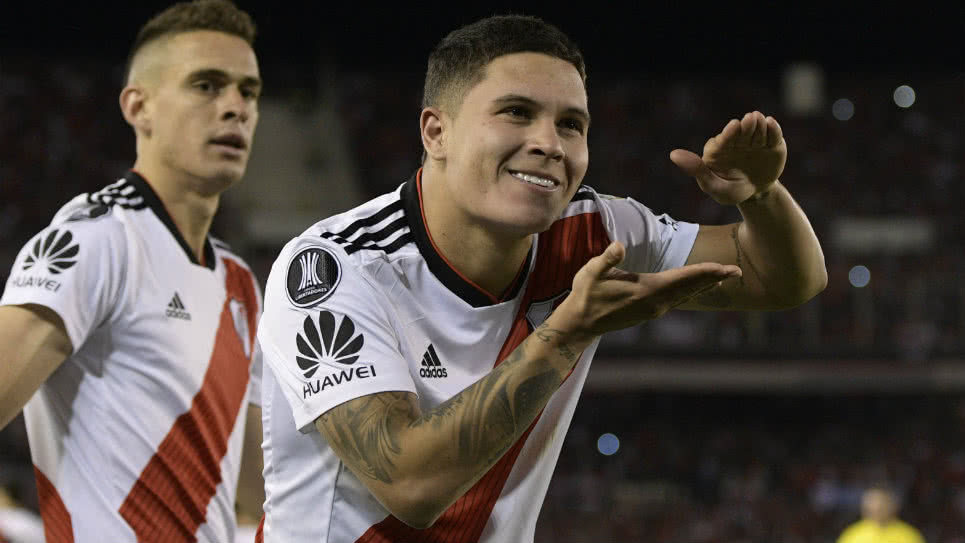1) En la Conmebol Libertadores 2018 Juan Fernando Quintero jugó 11 partidos (484 minutos), participando en dos goles: anotó en el juego de vuelta ante Independiente y dio una asistencia ante Santa Fe, en fase de grupos.