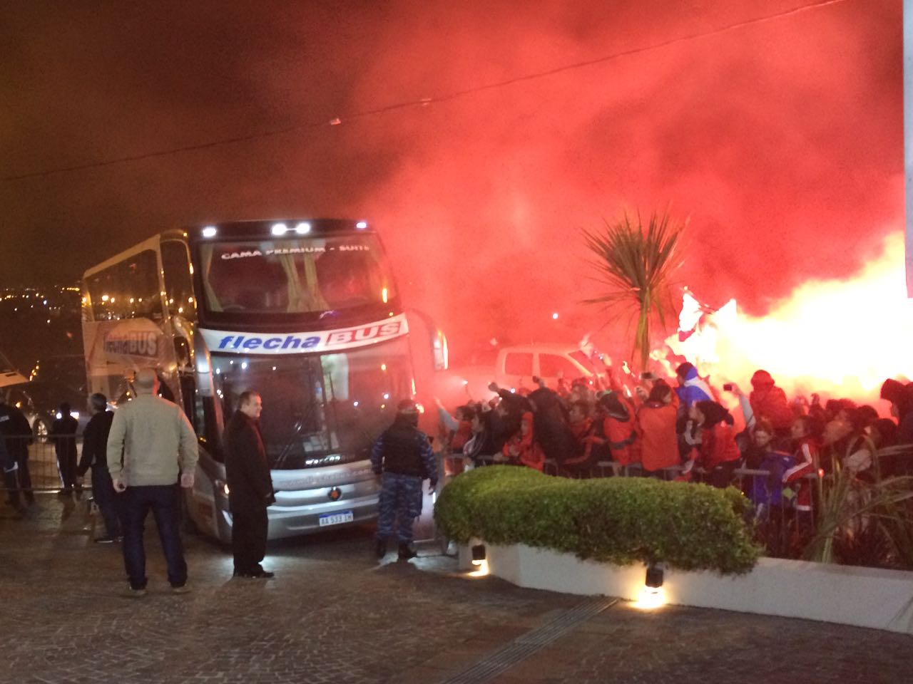 Anoche el plantel de River fue recibido por una multitud frente al hotel donde se concentra. Hubo bengalas, cantos y mucha alegría para el público millonario que armó su fiesta. Hoy una multitud alentará al millonario en el Minella.