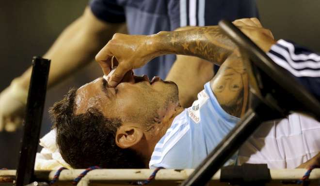 El delantero de Boca sufrió un fuerte golpe anoche en Asunción frente a Paraguay jugando para la Selección de Martino que logró un magro empate 0 a 0. Carlitos sufrió un codazo a los 11 del ST. El delantero regresó esta madrugada al país y fue trasladado a una clínica para hacerse más estudios. El parte es una fisura en el tabique en el sector derecho. Carlitos está con dolor y es preocupación en Boca. No correría riesgo de perderse el partido con Racing y en todo caso jugaría con una máscara protectora como la que usó hace unos meses Calleri. ¿Habrá Apache enmascarado? Boca quiere dar la vuelta y Charly no puede faltar. #Leto