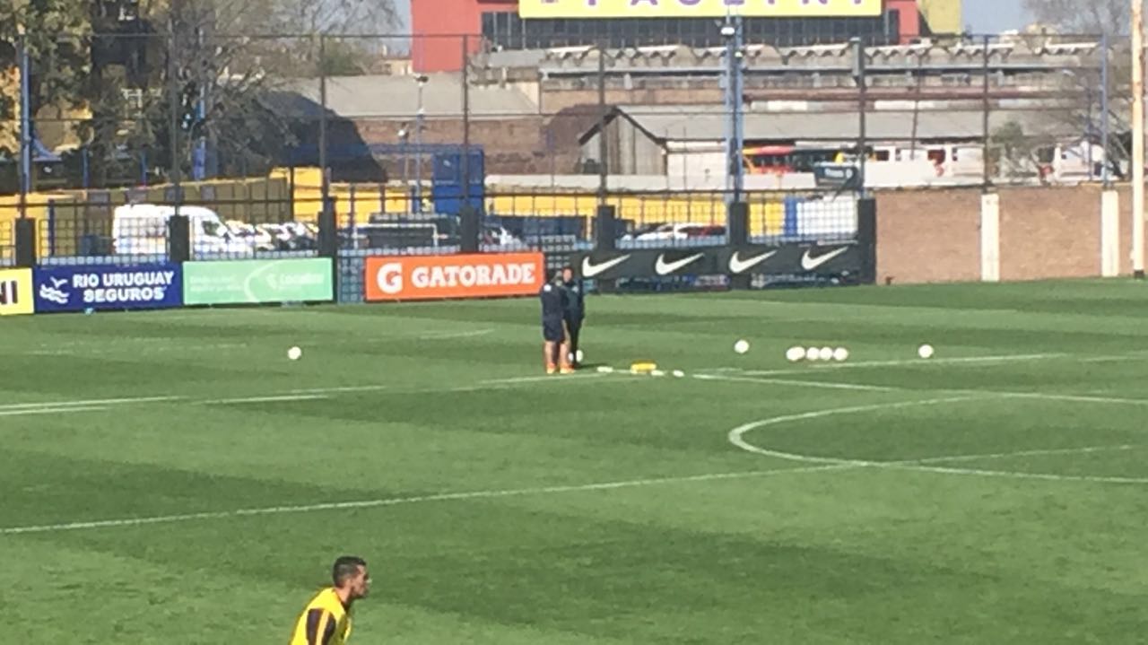Darío Benedetto tuvo que dejar la práctica por una molestia. El por ahora 9 titular de Guillermo iría de entrada el sábado en Chaco. Ahora habrá que esperar.