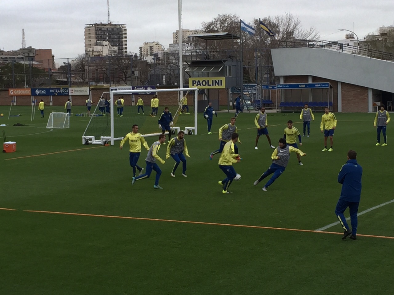 Mañana de mucho trabajo en Boca dispuesto por el profe Roberti. La idea es pasar por distintas estaciones de trabajo. Ejercicios de definicion, trabajos con pelota y reducido del que participan Gago, Erbes y el Cata que ayer trabajaron en forma diferenciada por pequeñas molestias. El que lo hace también sin problemas es Orión ya recuperado del golpe sufrido el domingo. En estas horas el arquero tendrá que ir a AFA a declarar por la expulsión del domingo. En el turno de la tarde seguramente el DT aprovechará para trabajar en lo táctico.