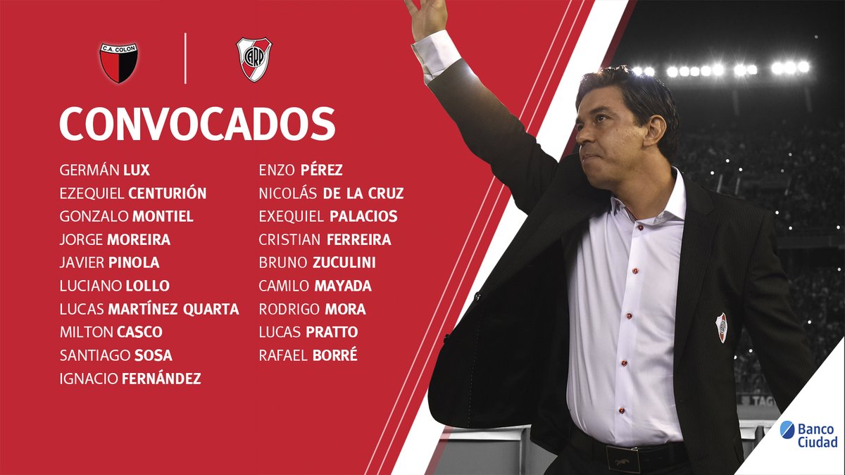 River visita a Colón el viernes 21.15 y el plantel viajará el mismo día a las 17.00 con los siguientes jugadores: