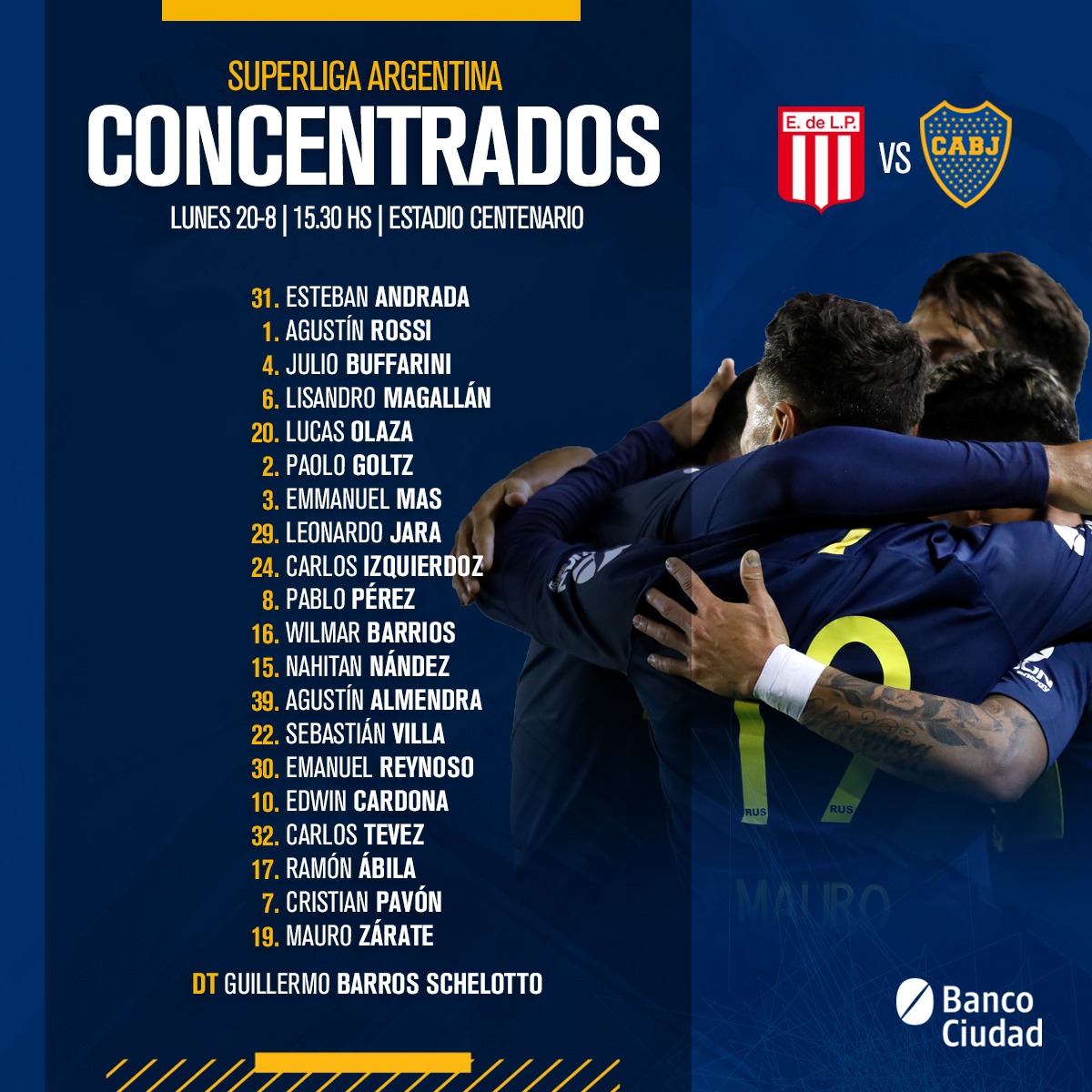 Con respecto al debut, se destaca la presencia de Goltz en lugar de Izquierdoz y el ingreso de Edwin Cardona por Carlos Tévez.