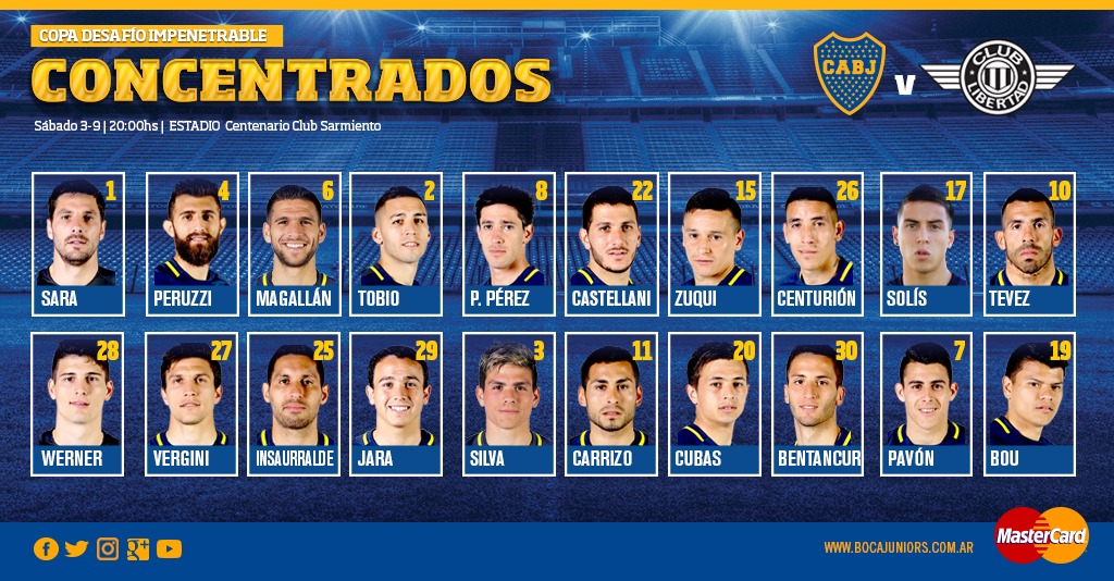 Sara, Peruzzi, Vergini, Tobio, Silva; Pérez, Bentancur, Pavón, Tevez, Centurión y Bou.