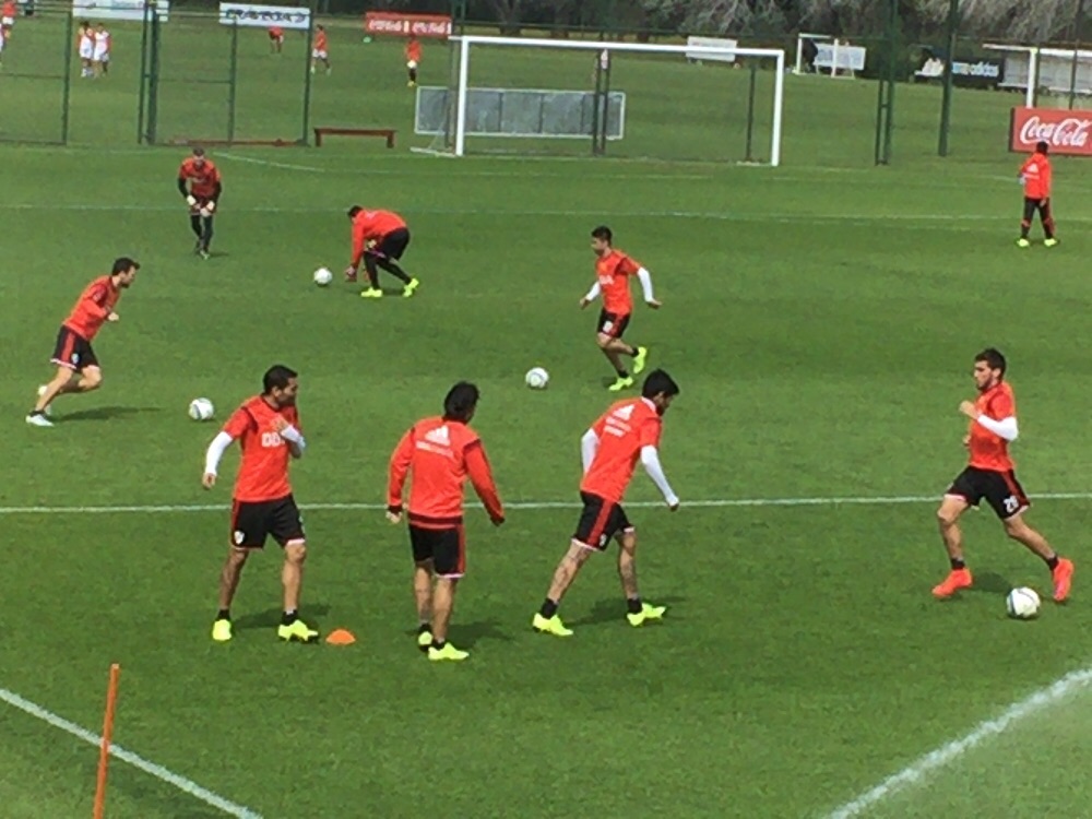 El equipo de Gallardo se entrena en Ezeiza con la mente puesta en el partido del sábado contra Boca. Tras arrancar la mañana en el gimnasio los jugadores de River salieron al campo de juego para hacer trabajos con pelota. La buena noticia del día es que Vangioni se entrenó con el grupo y podría sumar minutos. Gallardo todavía no dio pistas sobre el equipo que saldrá a la cancha en el Kempes